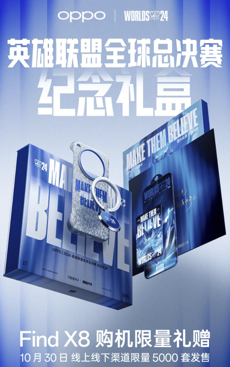 值得一提的是,OPPO也是先后推出了Find X2英雄联盟S10限定版、Reno7 Pro英雄联盟手游限定版和Find X8英雄联盟总决赛纪念礼盒等精心定制的产品,其中Find X8英雄联盟总决赛纪念礼盒在10月30日线套发售。可见,举办全国门店观赛和沉浸式影院观赛等多样化创新观赛体验,可以说OPPO始终关注年轻人的电竞需求,努力为用户带来惊喜。
