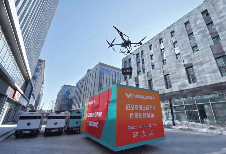 城市治理提质增效的同时,低空经济也在便民服务领域释放更大活力。“过去一件快递从分拣到派送至少需要一小时,现在无人机配送效率提升十几倍。”净月一家低空经济企业工作人员安童介绍,他刚完成一单无人机配送任务,20余斤的快递被精准投送至一公里外的写字楼。如今,无人机与无人车、机器狗协同作业,安童数小时的工作量便可超过普通快递站所有工人一天的工作总和。
