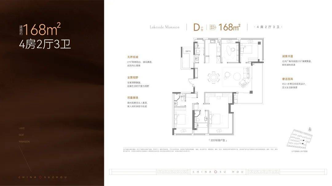 该户型精心设计了一个270°的转角阳台,住户有望借此欣赏到迷人的湖景,增添居住的浪漫氛围与观景享受。